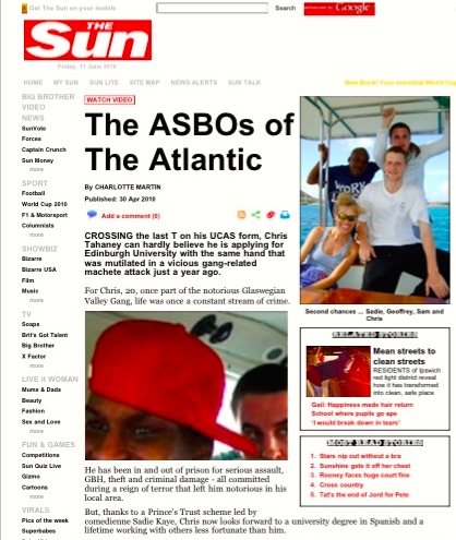 Sadie Kaye in The Sun (The ASBO’s of the Atlantic)